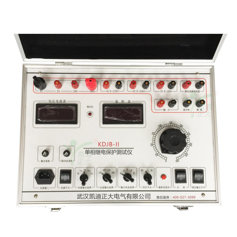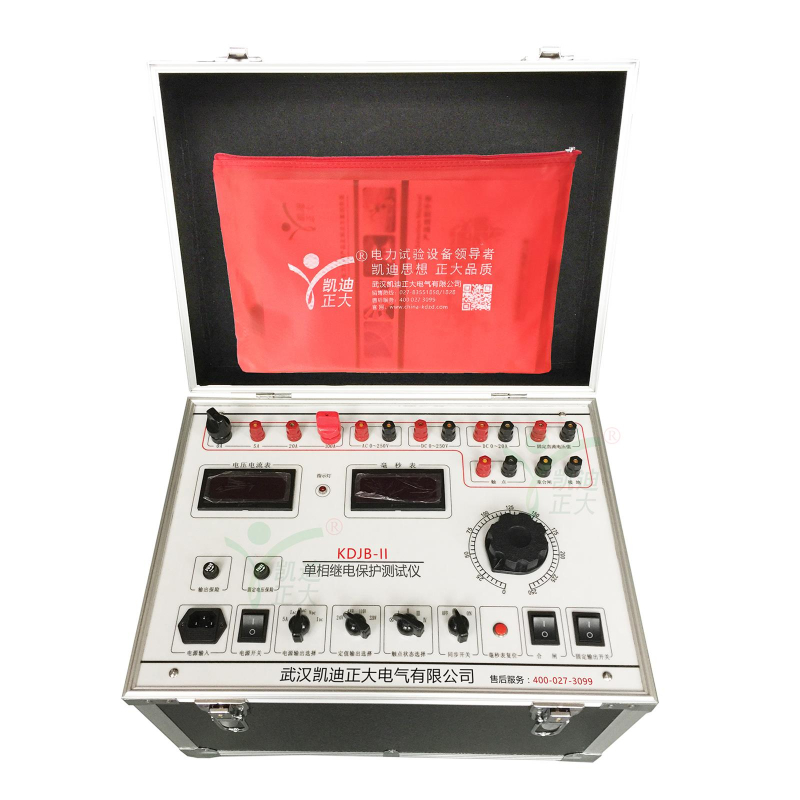 KDJB-II 單相繼電保護測試儀是我公司在原KDJB的基礎上開發成功的新一代校驗裝置。該儀器內部的交直流電壓、電流源采用了最新的電源技術,使儀器在電路設計、器件選型、面板布局、內部結構設計上達到國內先進水平。該儀器具有功能完善、選材優良、測試項目數據清晰、操作簡單等優點,是電力繼保部門的首選設備。