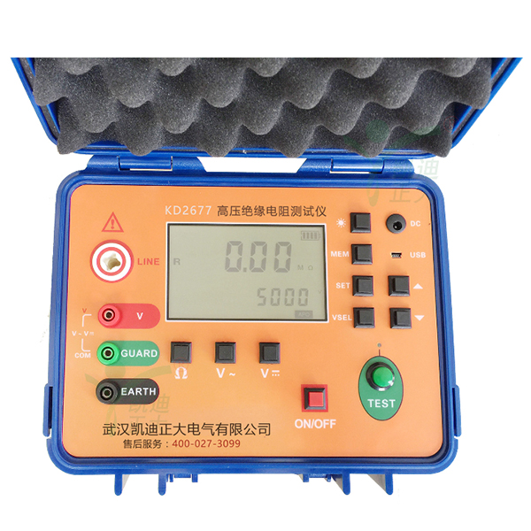 KD2677高壓絕緣兆歐表又名高壓絕緣電阻表,用于絕緣電阻的測試。本儀表具有大屏幕LCD灰白背光顯示、數據存儲、數據查閱、報警、自動放電、充電、自動關機等功能。同時還具備測量直流電壓交流電壓吸收比和極化指數功能。整機美觀高檔,量程寬廣,分辨率高,操作便捷,攜帶方便,準確、可靠、性能穩定,輸出功率大,抗干擾能力強。