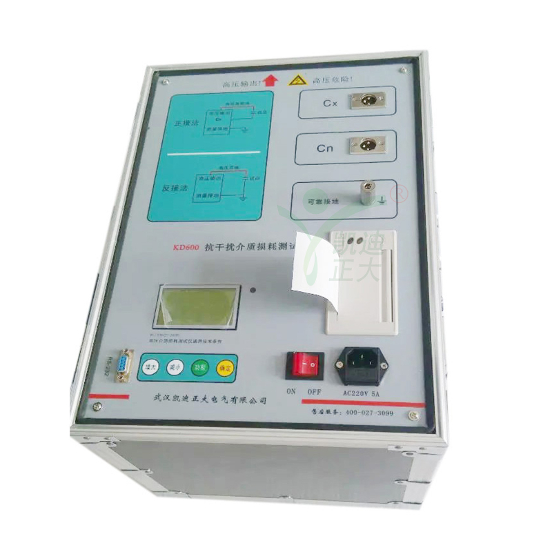 KD600B介質(zhì)損耗測試儀是發(fā)電廠、變電站等現(xiàn)場自動測量各種高壓電力設(shè)備介損正切值及電容量的高精度儀器。由于采用了變頻技術(shù)能保證在強電場干擾下準(zhǔn)確測量。儀器采用中文菜單操作,微機自動完成測量。