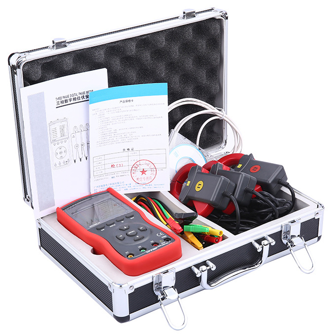 主機:1件;電流鉗:3件;測試線:4條;RS232數(shù)據(jù)線:1條;光盤:1個;電池(LR6):6節(jié);儀表箱:1件