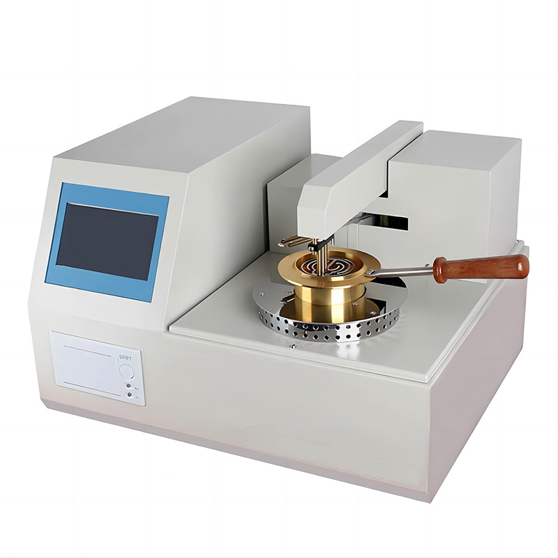 自動開口閃點測定儀是自主開發的具有國內領先水平的高科技產品(可進行油品閃點、燃點檢測)。閃火檢測裝置采用專利技術,利用高性能檢測離子環對火焰導電電阻值突變進行檢測,此檢測方式與火焰導電時離子運動方向一致,擴大檢測面,提高了靈敏度并避免了漏檢、誤檢等現象。