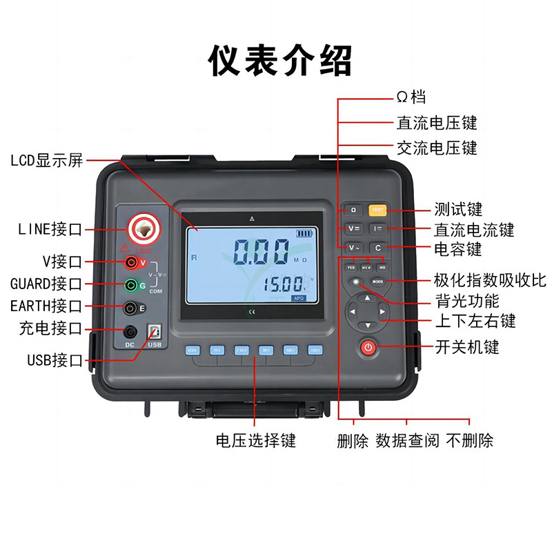 500V;1000V;2500V;5000V;10KV;15KV 精度額定電壓×(1±10%)