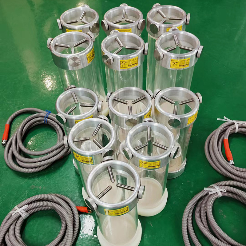 KDCT-10kV/KDCT-35kV電纜試驗(yàn)用油杯終端是我公司在總結(jié)了大量的現(xiàn)場局放試驗(yàn)經(jīng)驗(yàn)的基礎(chǔ)上,自行開發(fā)、設(shè)計(jì)的一種10~35kV以下交聯(lián)電纜和工頻耐壓試驗(yàn)的簡易試驗(yàn)終端,該油杯操作簡便,使用可靠。目前電纜廠均擁有多條XLPE生產(chǎn)線,但只有一套局部放電檢測設(shè)備。若采用我公司的專用終端,和剝削工具。將使局放實(shí)驗(yàn)簡單宜行,可將試驗(yàn)準(zhǔn)備工序時(shí)間減少一半,事半功倍。