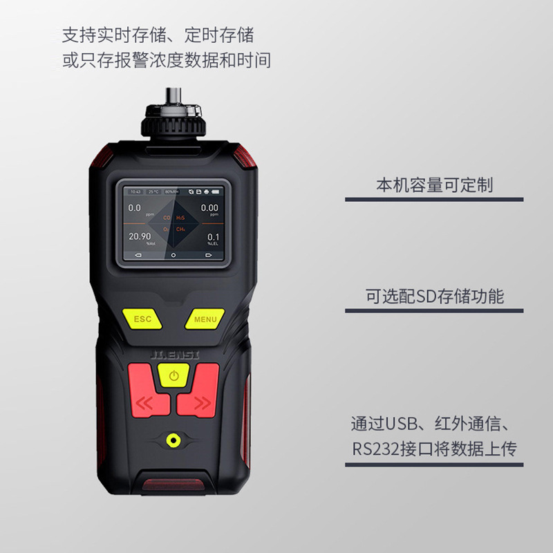 4、大容量數據存儲功能,支持多種存儲方式:標配 10 萬條數據存儲容量,更大容量可訂制; 支持實時存儲、定時存儲,或只存報警濃度數據和時間。