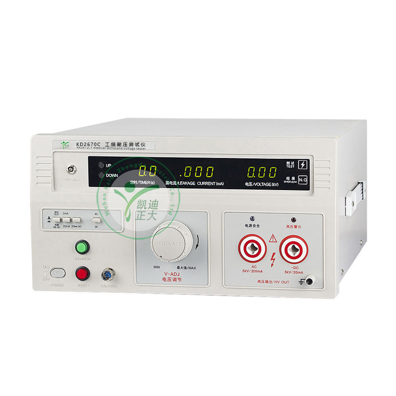 KD2670C工頻耐壓試儀是通用型的高壓測試儀器,廣泛用于電工器材、膠木電器、變壓器、電源線、電能表、電機、電源插頭座、電纜線等的耐壓測試,以及各種電子電氣產品的耐壓測試