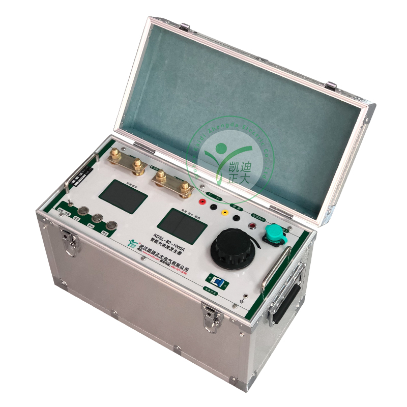 KDSL-82-1000A智能大電流發生器,它集國內外同類產品的優點于一身,顯示采用彩色液晶屏,同時顯示一次電流,二次電流,電力互感器變比,極性的試驗。做電力一次通流試驗時能夠精確指示動作時間。