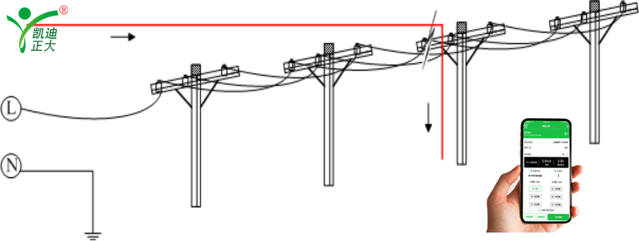 1.1.1定點:當(dāng)確定故障區(qū)段后,主機輸出的信號將沿線路經(jīng)故障點流入大地(如下圖),根據(jù)此特點即可采用二分法進(jìn)一步定位故障。