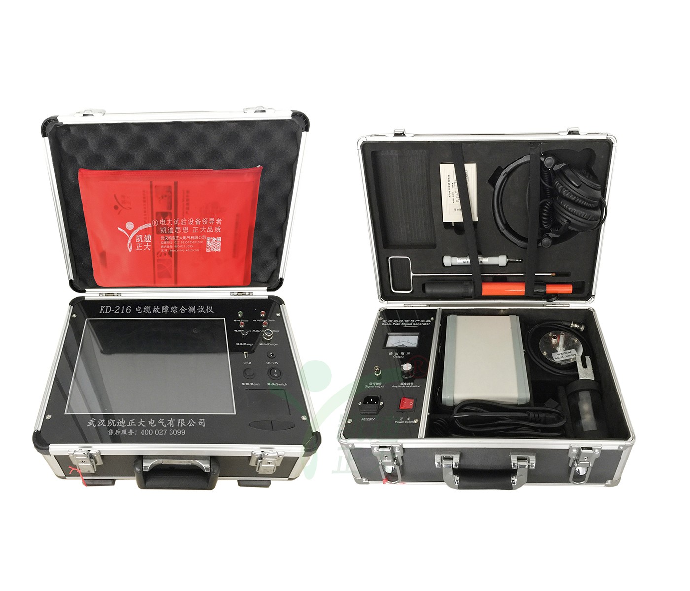 KD-216電纜故障測試儀是由KD-216路徑信號發(fā)生器、KD-216路徑定位接受機、感應(yīng)式探頭、電位差式探測架等組成。電纜尋跡及故障定位儀是光纜、電纜故障定位測試的專用儀表,適用測試對象為具有金屬導(dǎo)體(線對、護層、屏蔽層)的各種光纜、電纜。其主要功能為對地絕緣不良點的定位測試,線纜路徑的探測以及線纜埋深的測試。有線通信的暢通和電力的輸送有賴于電纜線路的正常運行。