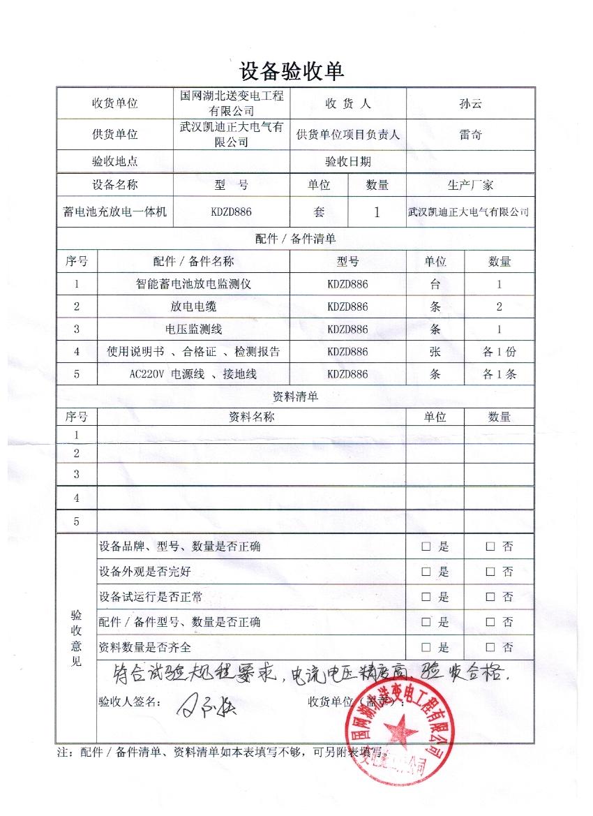 國網(wǎng)湖北送變工程有限公司驗(yàn)收我司KDZD886蓄電池充放電一體機(jī)一套