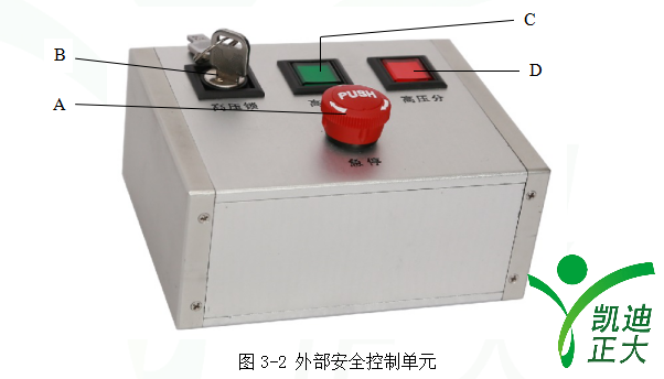 A、急停開關:按下時切斷高壓恒流源,正常加壓時應彈起;