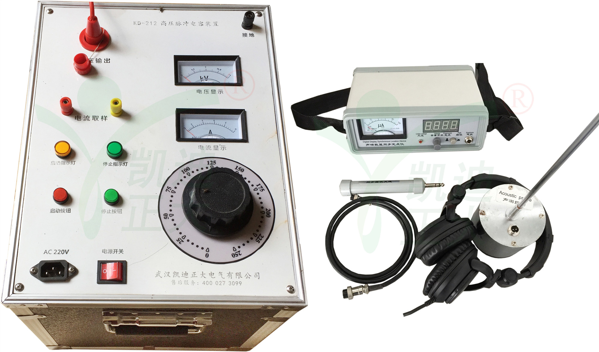 KD-212整套電纜故障測試儀由閃測、尋跡、定位三大部分組成。電纜故障測試儀(閃測儀)可用于檢測電纜尋跡及故障定點(diǎn)是由路徑儀、定點(diǎn)儀、T型探頭、A字架、聽筒等組成。本儀器是電纜故障定位測試的專用儀表,適用測試對象為具有金屬導(dǎo)體(線對、護(hù)層、屏蔽層)的各種電纜。其主要功能為對地絕緣不良點(diǎn)的定位測試,線纜路徑的探測以及線纜埋深的測試。