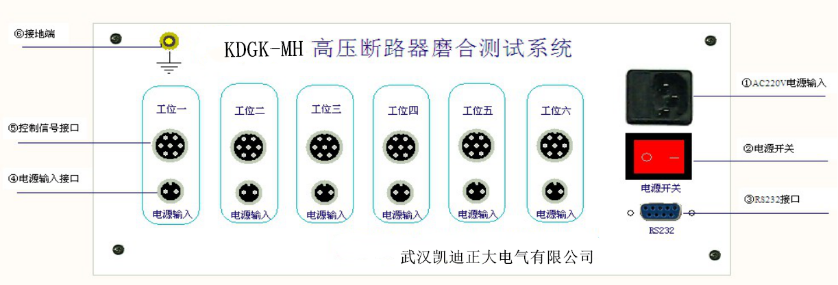 KDGK-MH高壓斷路器磨合測試系統控制面板以及電源信號接口說明