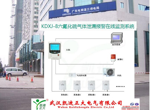 KDXJ-8六氟化硫氣體泄漏報警在線監測系統最多可監控環境中32個監測點,也可采用多重主控單元組網控制,并與電站自動化系統進行通訊等功能。對室內SF6濃度、O2的濃度進行有效地監控,很大地提高了無人值守變電站運行的安全性,特別是對日常巡視和維護人員的人身安全得到可靠的保障。武漢凱迪正大電氣有限公司定期進行客戶回訪,該系統運行良好,得到了廣東湛江供電局領導的稱贊。