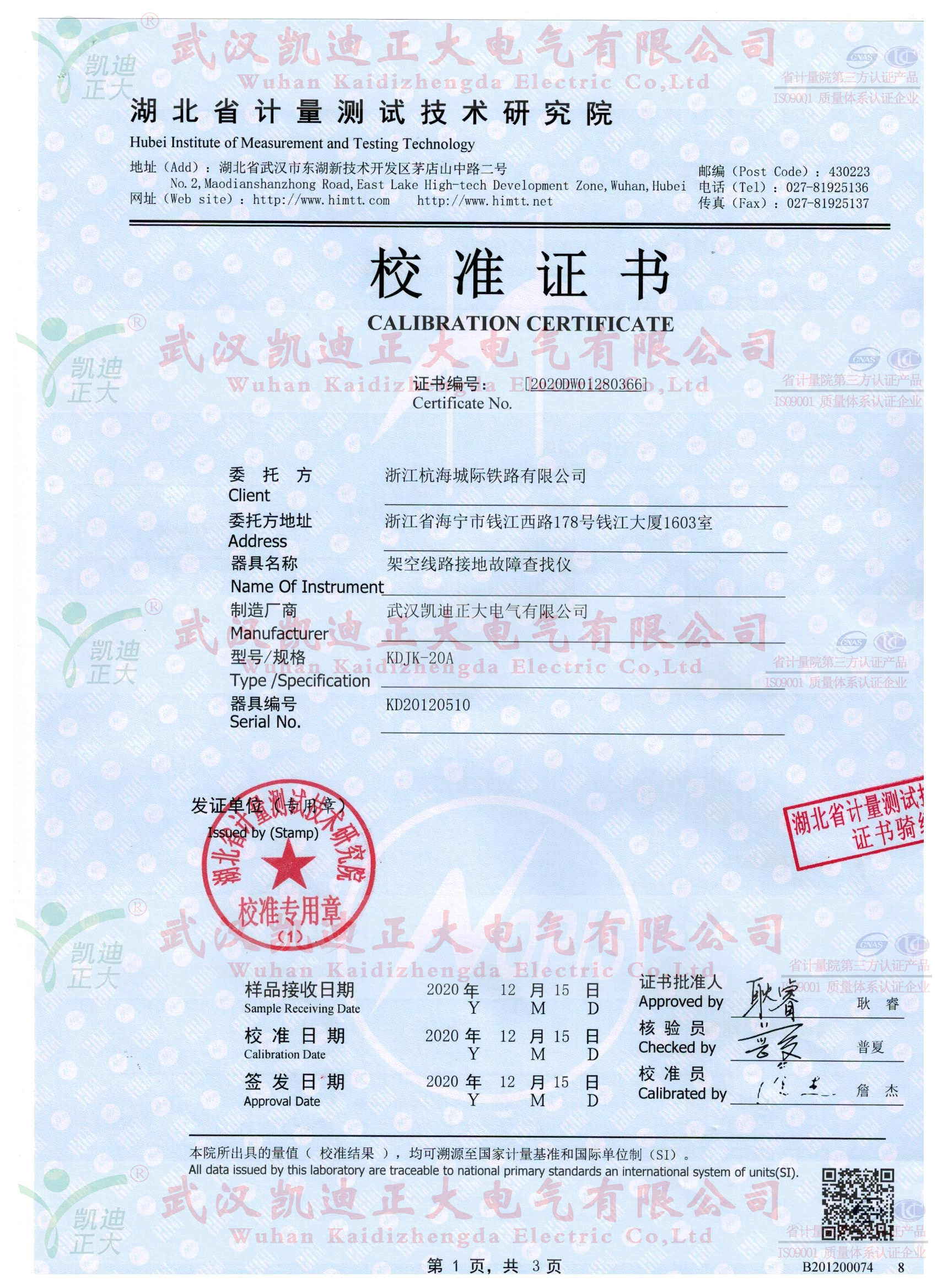 浙江交通集團杭海城際鐵路采購線路故障定位裝置一批