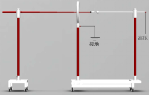 如上圖所示為2中驗電器啟動電壓的接線圖,左圖為帶接觸電極延長的驗電器,右圖為不帶接觸電極延長的驗電器。