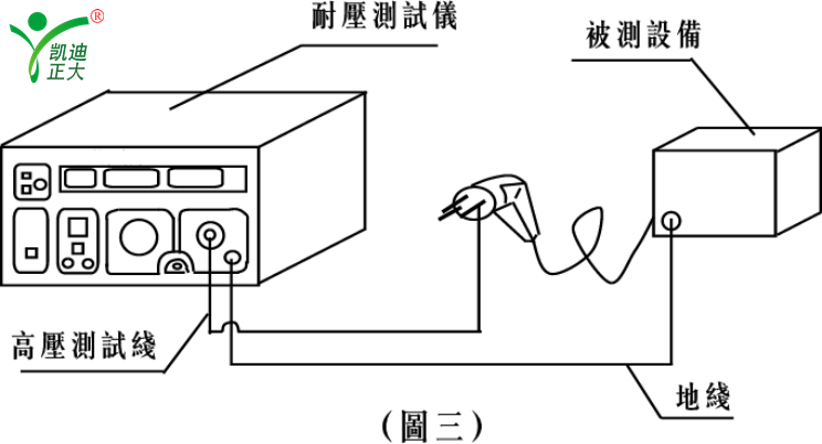 按圖三將耐壓儀與被測(cè)整機(jī)連接,接通被測(cè)整機(jī)電源開關(guān),根據(jù)被測(cè)整機(jī)產(chǎn)品標(biāo)準(zhǔn)設(shè)置漏電流報(bào)警值,然后再按4條或5條所進(jìn)行測(cè)試。如若被測(cè)整機(jī)產(chǎn)品標(biāo)準(zhǔn)沒(méi)有規(guī)定具體漏電流報(bào)警值,則推薦按下式計(jì)算:Iz=Kp(U/R)...............(1)