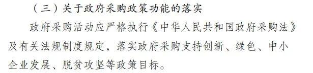 根據(jù)《湖北省政府集中采購(gòu)目錄及標(biāo)準(zhǔn)(2021年版)》有關(guān)要求,采購(gòu)人應(yīng)按照國(guó)家有關(guān)規(guī)定,認(rèn)真執(zhí)行支持本國(guó)產(chǎn)品、促進(jìn)中小企業(yè)發(fā)展、支持脫貧攻堅(jiān)、節(jié)約能源、保護(hù)環(huán)境、支持監(jiān)獄企業(yè)發(fā)展、促進(jìn)殘疾人就業(yè)等政府采購(gòu)政策。各部門在滿足基本需求的前提下,應(yīng)當(dāng)預(yù)留本部門年度政府采購(gòu)項(xiàng)目預(yù)算總額的30%以上,專門面向中小企業(yè)采購(gòu),其中預(yù)留給小型和微型企業(yè)的比例不低于60%。