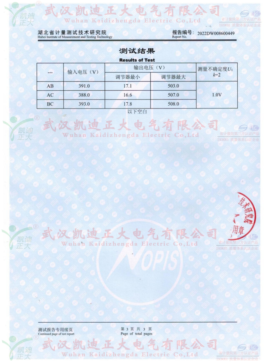 由于供應(yīng)速度、售后服務(wù)態(tài)度因素很快就收到了長興電器集團(tuán)中直電氣股份公司的采購訂單。感應(yīng)調(diào)壓器送湖北省計(jì)量測試研究員測試的紙質(zhì)報(bào)告已出。送檢結(jié)果如下:本次檢測是以數(shù)字多用表為主要檢測設(shè)備,以JJF 1587-2016《數(shù)字多用表校準(zhǔn)規(guī)范》為技術(shù)依據(jù),由湖北省計(jì)量測試技術(shù)研究院檢測完成的。