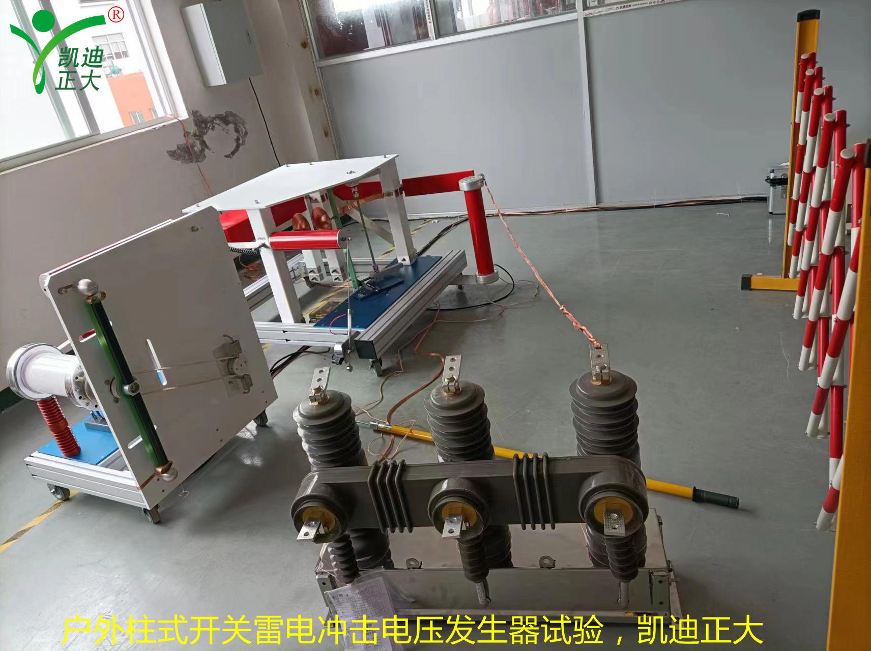1、試驗人員進入試區(qū)后,首先確保接地棒是掛在沖擊電壓發(fā)生器本體上后,才能對被試品進行接線;