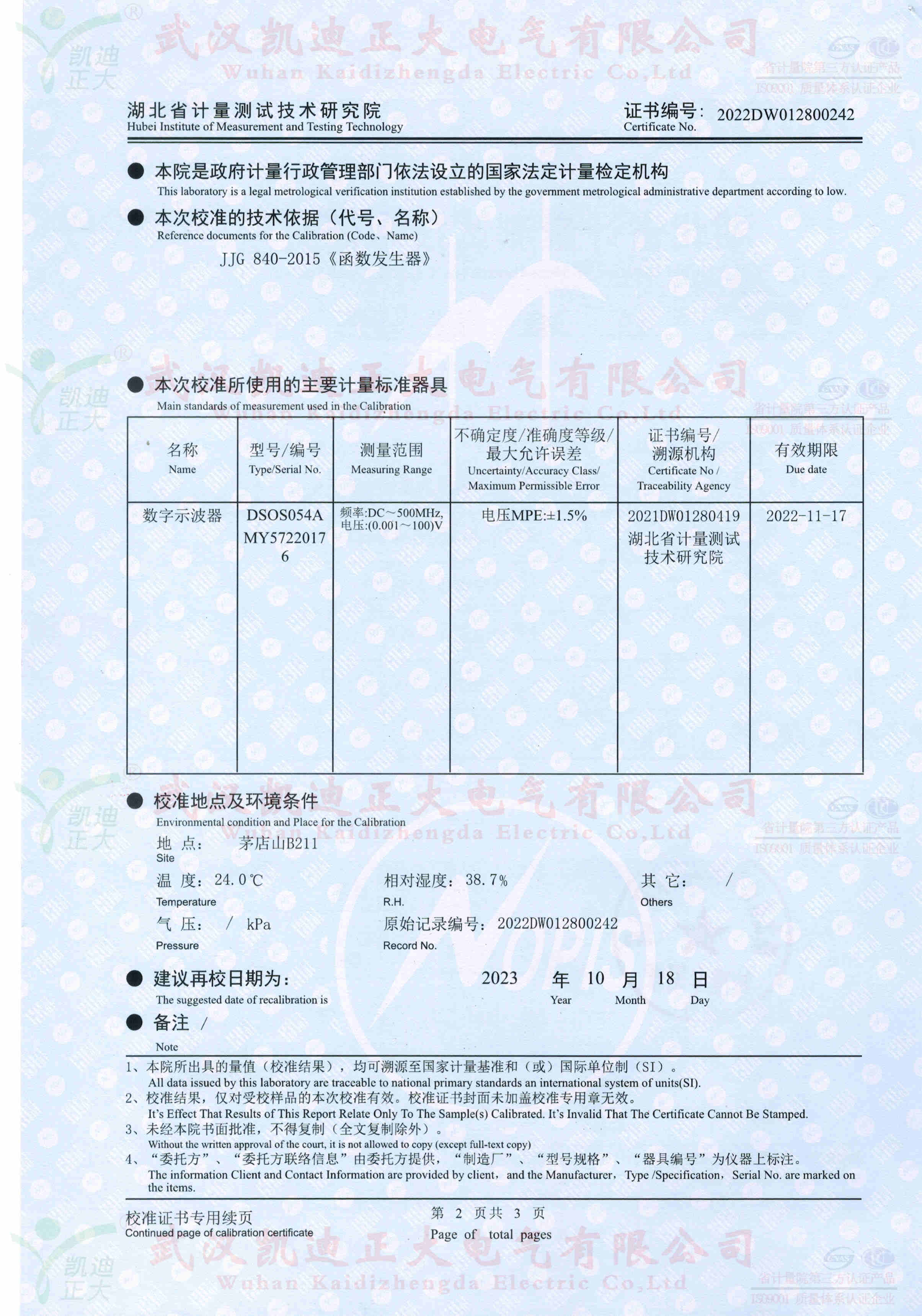架空線路故障儀獲得電氣設(shè)備質(zhì)量檢驗(yàn)測(cè)試中心報(bào)告