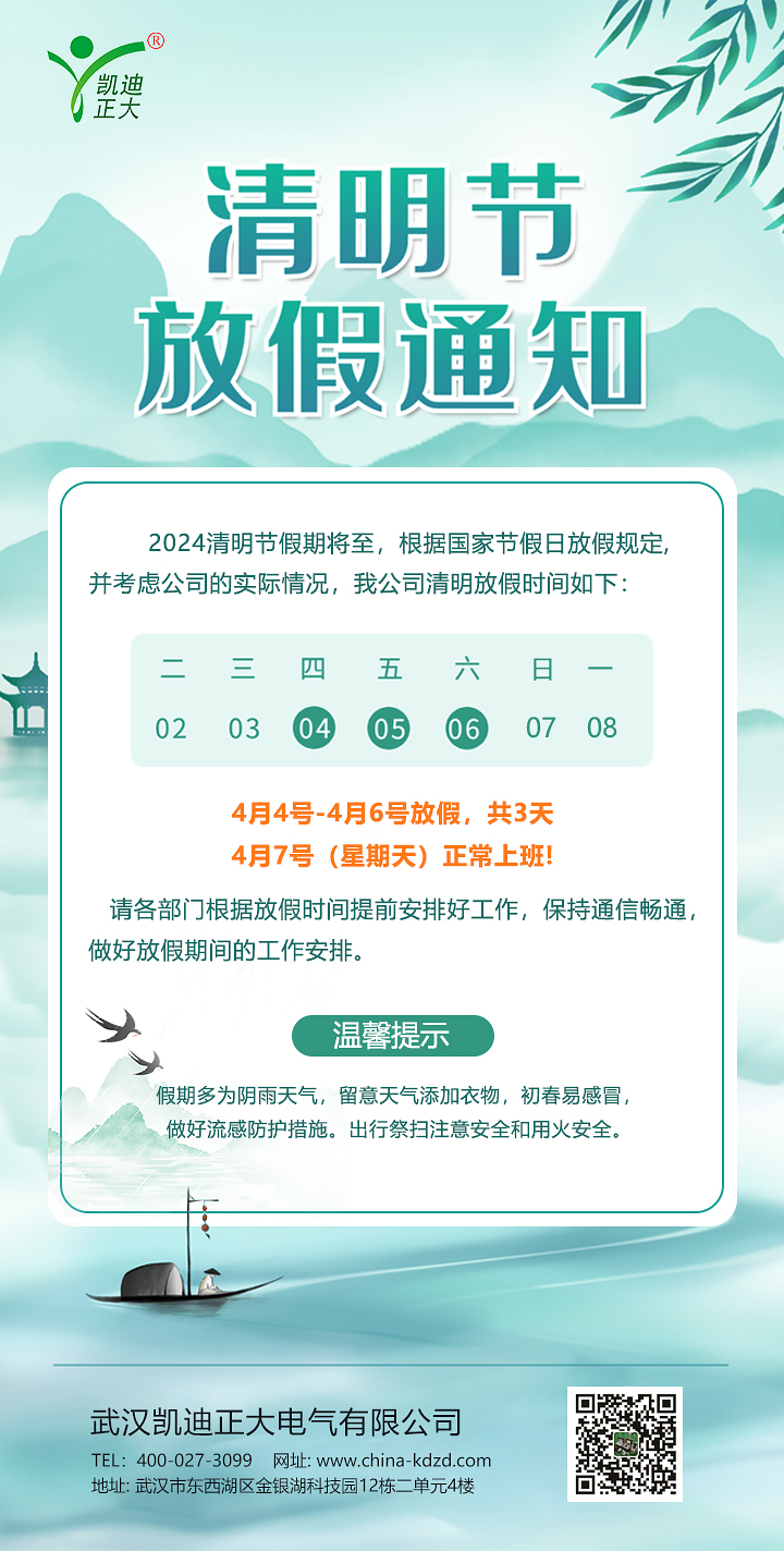 凱迪正大2024年清明節放假通知