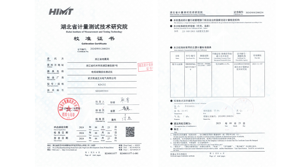 KD212電纜故障綜合測試儀嚴格遵循了JJG 840-2015《函數發生器》等相關校準標準,確保了測量結果的準確性和可靠性。在頻率測量方面,該測試儀覆蓋了從直流(DC)到500MHz的寬廣范圍,充分滿足了現代通信和電力系統中對高頻信號測試的需求。同時在電壓測量上,KD212也展現出了精度和穩定性和優勢,測量范圍可達(0.001~100)V,確保了在不同電壓等級下的電纜故障檢測都能得到準確無誤的結果。