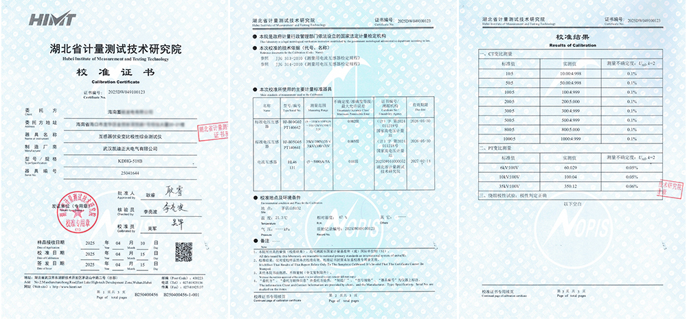 兩套設(shè)備均通過(guò)精度、重復(fù)性及穩(wěn)定性測(cè)試,同步獲得校準(zhǔn)證書(shū)(證書(shū)編號(hào):2025DW049100124;2025DW049100123)。此次雙機(jī)全項(xiàng)達(dá)標(biāo)不僅印證了武漢凱迪正大產(chǎn)品的可靠品質(zhì),更彰顯了海南客戶(hù)在電力檢測(cè)裝備選型中的精準(zhǔn)判斷,為深化長(zhǎng)期合作奠定了堅(jiān)實(shí)互信基礎(chǔ)。