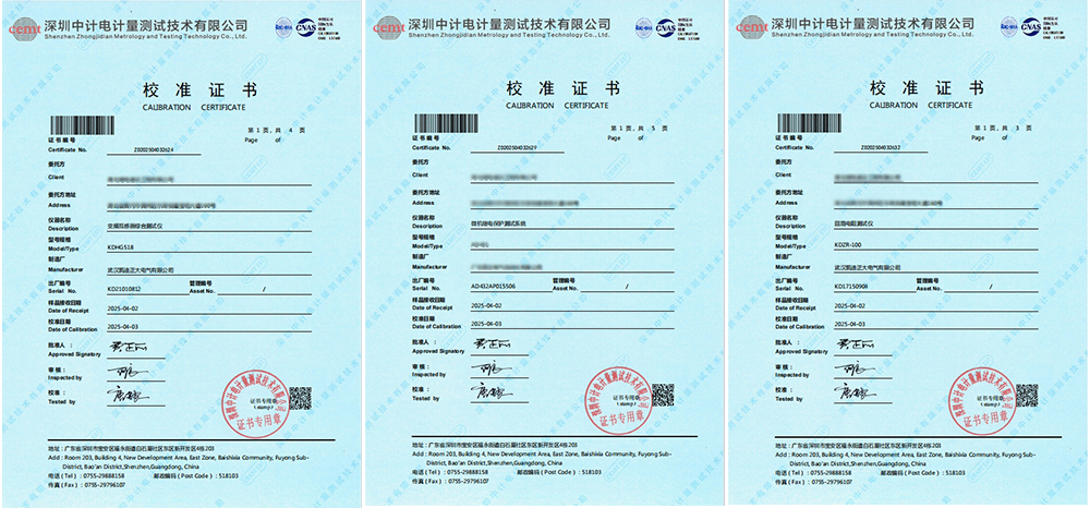 近日,湖北某電建設(shè)工程有限公批量采購武漢凱迪正大的近二十余套電力設(shè)備已經(jīng)全部順利通過深圳中計(jì)電計(jì)量測試技術(shù)有限公司的專業(yè)校準(zhǔn),并成功獲得了校準(zhǔn)證書。這一消息不僅彰顯了湖北某電建公司對武漢凱迪正大品牌的深度信任,也再次證明了武漢凱迪正大在電力設(shè)備制造領(lǐng)域的品質(zhì)與可靠實(shí)力。