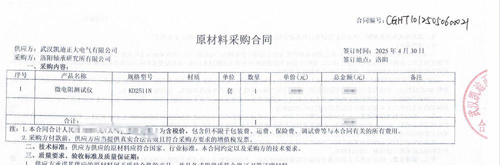 洛陽(yáng)軸承研究所有限公司對(duì)設(shè)備的選擇秉持著高標(biāo)準(zhǔn)、嚴(yán)要求的原則。在決定采購(gòu)KD2511N微電阻測(cè)試儀前,該公司進(jìn)行了詳盡的市場(chǎng)調(diào)研與產(chǎn)品對(duì)比。武漢凱迪正大以其專(zhuān)業(yè)的技術(shù)團(tuán)隊(duì)、完善的售后服務(wù)以及眾多成功案例,贏得了客戶(hù)的信賴(lài)。
